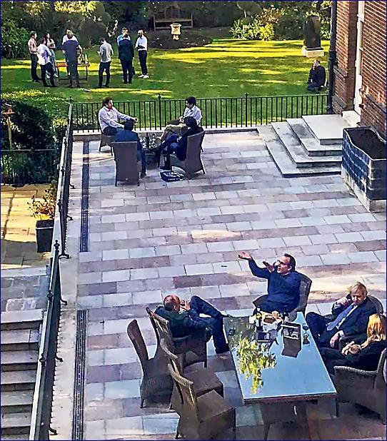 Bohužel vyšla najevo tato fotografie, na níž v popředí sedí Boris Johnson se svou tehdejší snoubenkou Carrie a nově narozeným synem u vína a u výběru sýrů. Ostatní přítomní sedí velmi ležérně také u vína, nemají ani poznámkové bloky ani počítače, z nichž by se dalo vysoudit, že na zahradě skutečně pracují.