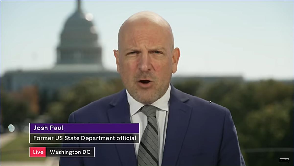 Josh Paul: Děkuji vám za pozvání. Podívejte se. Nikdo nepochybuje, žádný rozumný člověk nepochybuje o právu Izraele reagovat na zvěrstva Hamásu. To, co vidíme v Gaze, je však humanitární katastrofa. Slyšeli jsme izraelské obranné síly, vysoké představitele a generály, jak říkají, že jejich cílem je poškodit, nikoliv přesnost. A v této souvislosti se nedomnívám, že bychom měli poskytovat zbraně, které tuto katastrofu umožní, a už vůbec ne bez jakékoli debaty, která by taková závažná rozhodnutí obvykle doprovázela.
