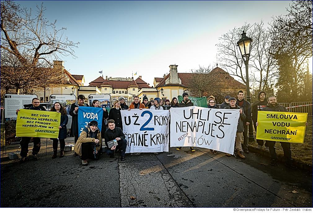 Již dva roky uplynuly od podpisu česko-polské dohody o uhelném dole Turów a situace v pohraničí se kvůli negativním vlivům těžby uhlí stále zhoršuje. Klimatické hnutí Fridays for Future společně s ekologickou organizací Greenpeace a místním Sousedským spolkem Uhelná upozornilo na toto výročí happeningem “Už dva roky špatné kroky” před Kramářovou vilou v Praze. Požadují, aby česká vláda znovu zasedla ke stolu s novou polskou vládou, a zajistila dodržování zákonů a ochranu českých podzemních vod.