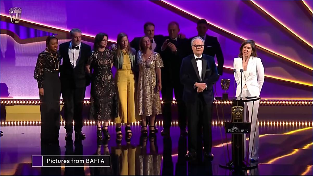 "My tuto cenu věnujeme všem novinářům, a bylo jich letos příliš mnoho, více než 126, kteří byli zabiti při výkonu služby, a to nejen ve válce v Gaze, ale ve všech válkách. Toto je pro ně (pozvedl cenu). Děkuji vám, Britská filmová a televizní akademie."