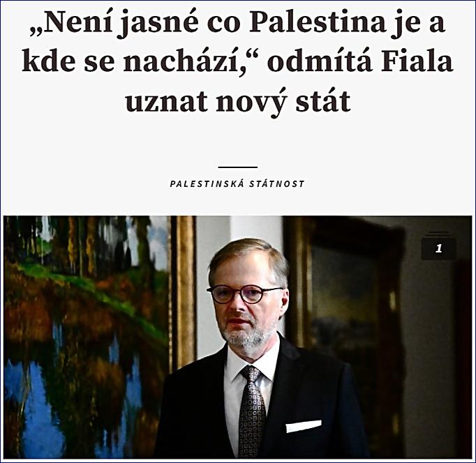 Jak upozorňuje například deník Guardian, Česká republika uznává (určitý) palestinský stát. Zřejmě z doby komunismu. Překvapivě, premiér České republiky Petr Fiala to NEVÍ.