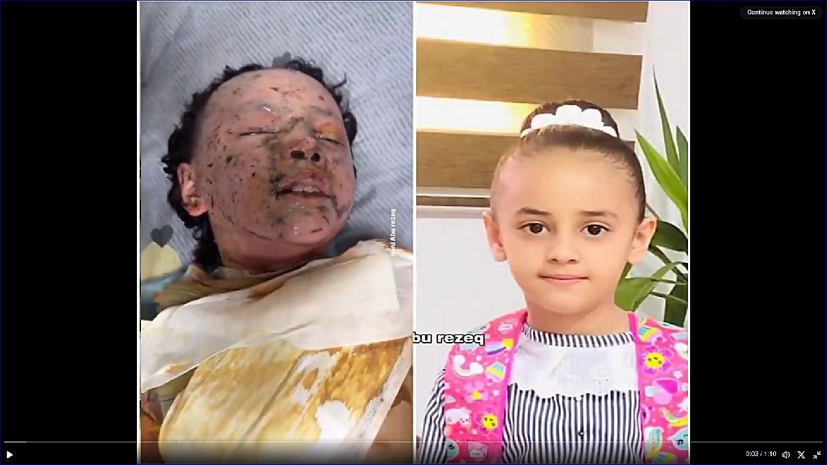Before and after Hanan Aql, a 10-year-old Palestinian girl, Zionist aircraft bombed her with white phosphorous incendiary shells in the Al-Bureij refugee camp in central Gaza.