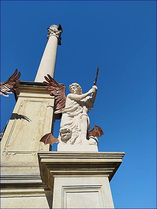 Musím říct, že pokaždé když na Mariánském sloupu přibude nějaká nová "featura", zvyšuje se míra mého pobavení. píše Matěj Metelec. To, že tenhle konkrétní anděl ve tváři připomíná komunistického malíře Diega Riveru, ve mě vzbuzuje po ránu veselost už několik měsíců. Bronzové propriety, kterými byli andělé i ďáblové nedávno opatřeni, jdou ale ještě dál. Vyvolávají totiž neodbytný dojem, že byly vytvořeny v bezprostředním okolí sloupu, na Staroměstském náměstí během jednoho z bezpočtu trhů, které se tu konají, v takové té "středověké kovárně", u které se prodávají různě přívěšky na krk, mosazné pivní korbele atp. Už teď se nemůžu dočkat, co přijde dál.