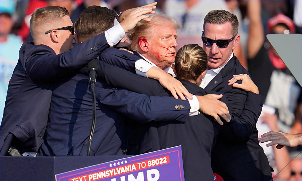 Bylo slyšet hlas, který říkal: "K zemi, k zemi, k zemi!". Agenti se přišli vrhnout na Trumpa, zatímco střelba pokračovala a z davu se ozývaly výkřiky.