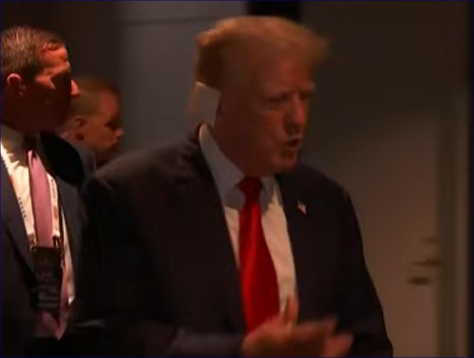 Donald Trump s obvazem, který mu částečně zakrýval pravé ucho, se poprvé od víkendového pokusu o atentát objevil na veřejnosti.