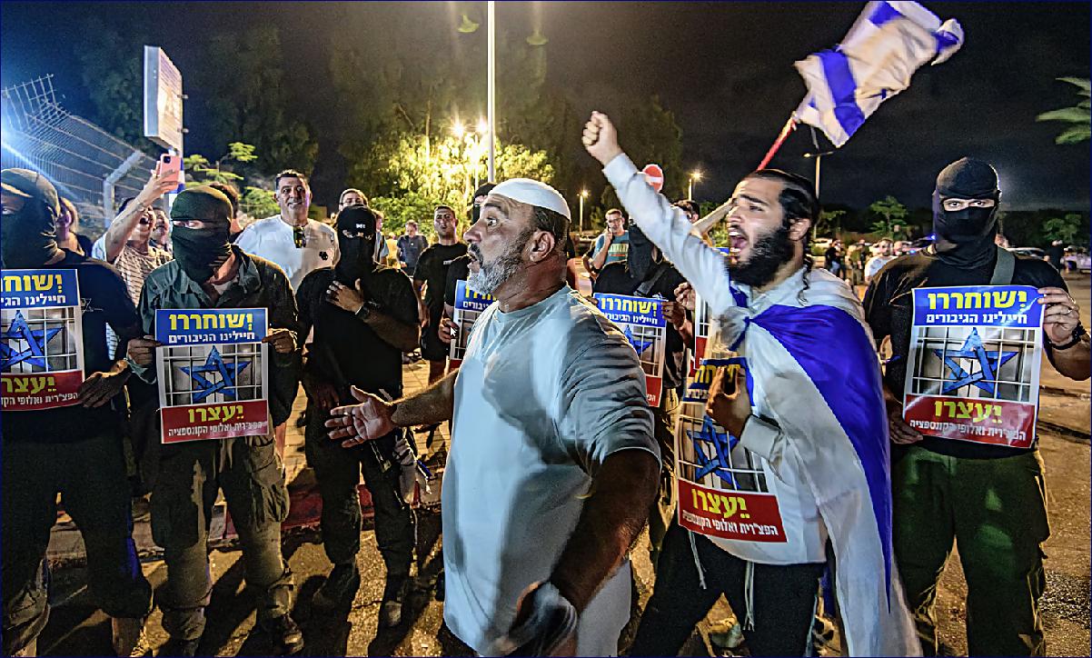 To, co následovalo poté, co se zpráva o zatčení rozšířila, byl překvapivý pohled na politické proudy, které zmítají izraelskou společností: asi 200 pravicových demonstrantů, včetně několika poslanců Knesetu a ministrů vlády, vtrhlo na protest proti zatčení na základnu a rozešli se až po několika hodinách po údajném použití slzného plynu.