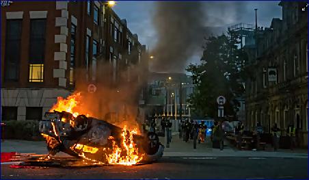 Několik desítek lidí v davu házelo cihly a benzinové bomby, zapálilo policejní Land Rover a pokusilo se zapálit zbytky supermarketu, který byl požárem zničen během sobotních nepokojů. Jeho majitelem je přistěhovalec. "Policistům se podařilo tento malý požár uhasit dříve, než se rozvinul," uvádí se v prohlášení.