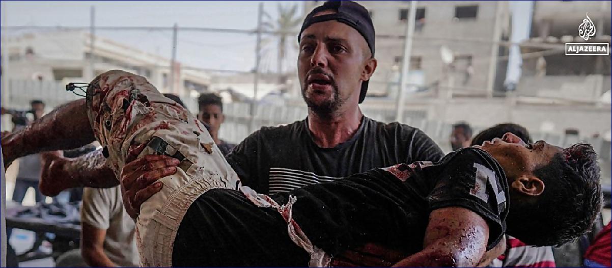 Zpravodaj Al-Džazíry na místě informuje o intenzivních izraelských útocích na Chán Júnis na jihu Gazy, kde stany pro vysídlené osoby zachvátily plameny po raketových útocích, jejichž terčem byly i obytné budovy.
