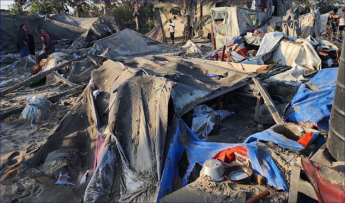 Obyvatelé a zdravotníci uvedli, že stanový tábor v oblasti al-Mawasi byl zasažen nejméně čtyřmi střelami. Tábor je přeplněn vysídlenými Palestinci, kteří uprchli z jiných částí enklávy.