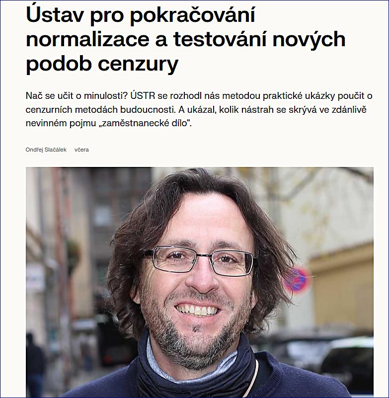 Badatelská učebnice dějepisu se stala symbolickou kótou. Lidé, kteří se snažili brát práci v ÚSTR vážně a pochopili jej nikoli jako paravědeckou instituci, ale jako skutečně odborné pracoviště, a pokoušeli se o kvalitní bádání a vzdělávání o nedávné minulosti, měli smůlu. Senát se stal znovu pravicovým, navolil Radu ÚSTR, která tomu odpovídala, a ta zvolila ředitelem jednoho z autorů oné „zakázané předmluvy“ Ladislava Kudrnu, fanouška koloniálních armád, v jehož textech se potulují neoznačené odstavce převzaté z Wikipedie, a muže velmi plochého vidění světa. Ten se rozhodl pojmout svůj návrat jako očistu ÚSTR od všeho, co podle jeho názoru neodpovídá zákonnému vymezení ústavu, kterému rozumí především jako antikomunistické propagandě v masce pozitivistické vědy.