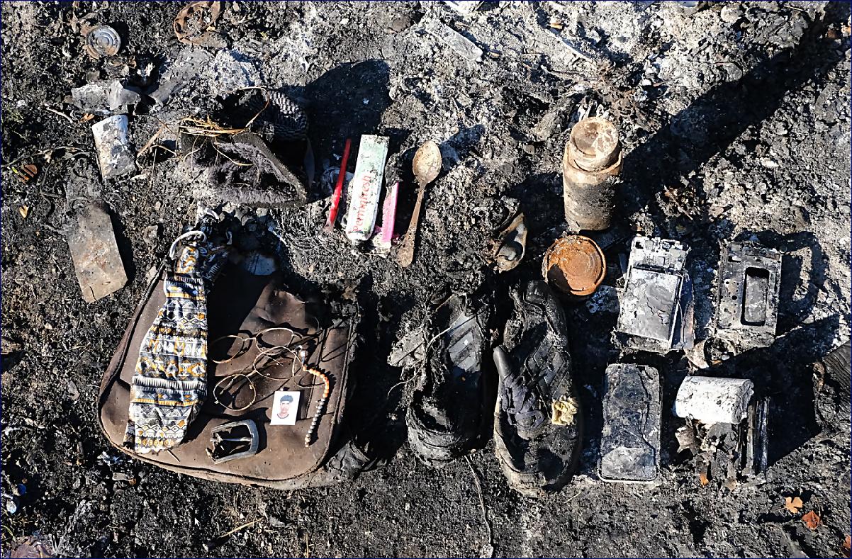 Organizace identifikovala místa v oblastech známých z odsunu a zdokumentovala průkazy totožnosti, napůl spálené tašky, stovky telefonů, bot, brýlí, úředních vládních dokumentů, powerbank, peněz a dalších předmětů denní potřeby, které potvrzují výpovědi.