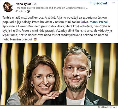Je pozoruhodné, čemu všemu se dá v Česku říkat “think-tank”. Na fotce s paní Tykač je pan Prchal, někdejší copywriter Andreje Babiše. Jeho obličej se vryl do paměti Čechů v roce 2017, kdy Babišův politicko podnikatelský projekt, Hnutí Ano, zvítězil ve sněmovních volbách a a spokojený "investor" líbal malého Prchala na čelo. Scéna vypadala, jako kdyby si Babiš hrál se svým domácím mazlíčkem. Marek Prchal se stal synonymem naprosté prodejnosti a dokonce i v oblasti PR, která na prodejnosti stojí, se proti bezhraniční ochotě sloužit začala vymezovat nemalá část profesionálů. A tento člověk je nyní představován Ivanou Tykač, manželkou Pavla Tykače, majitele fosilní energetické společnosti Se.ven, jako "expert na českou populaci". Jenž má údajně s dalším bývalým marketérem Babiše pomáhat rozvíjet "think tank". Bylo by dobré uvést na pravou míru, jak se věci mají a k čemu s vysokou pravděpodobností tato aktivita směřuje.