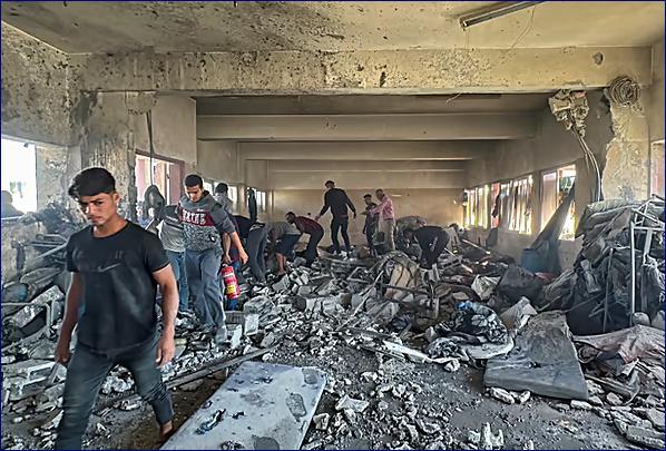 Izraelská armáda napsala na Telegram, že úder na školu, která poskytuje útočiště vysídleným Palestincům v uprchlickém táboře Nuseirat v Gaze, byl zaměřen na to, co popsala jako „teroristy Hamásu, kteří operovali uvnitř velitelského a kontrolního centra v oblasti“, a obvinila Hamás ze „systematického zneužívání civilní infrastruktury v rozporu s mezinárodním právem“. Jenže podle mezinárodního práva je zakázáno střílet na děti a teroristy, i když jsou údajně "přitomni nepřátelští vojáci".