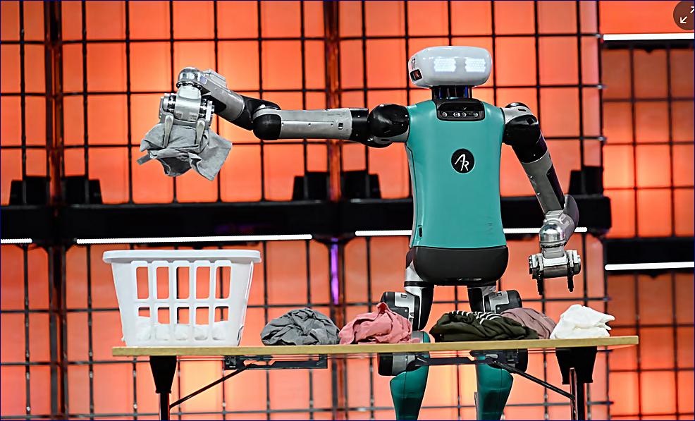 Digit, humanoid zkonstruovaný americkou firmou Agility Robotics, předvedl, jak daleko se umělá inteligence za několik let dostala, když reagoval na hlasové příkazy - filtrované přes model Gemini AI společnosti Google - a rozděloval hromadu barevných triček a ukládal je do koše.