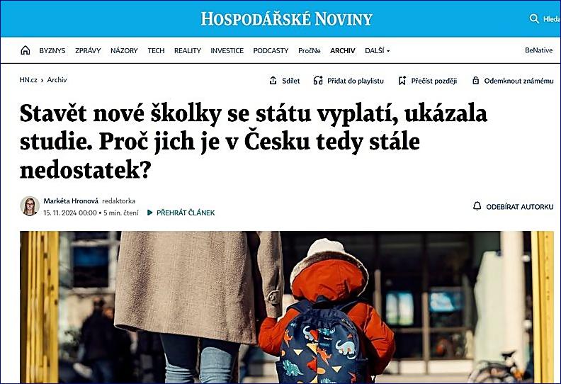 Daniel Münich: Česko v posledních 15 letech promarnilo obrovskou příležitost, jak pomoci veřejným rozpočtům a svým občanům. Aktualizovaná analýza veřejných nákladů a výnosů míst ve školkách i po mnoha letech ukazuje, že místa ve školkách se státu vyplácí.
