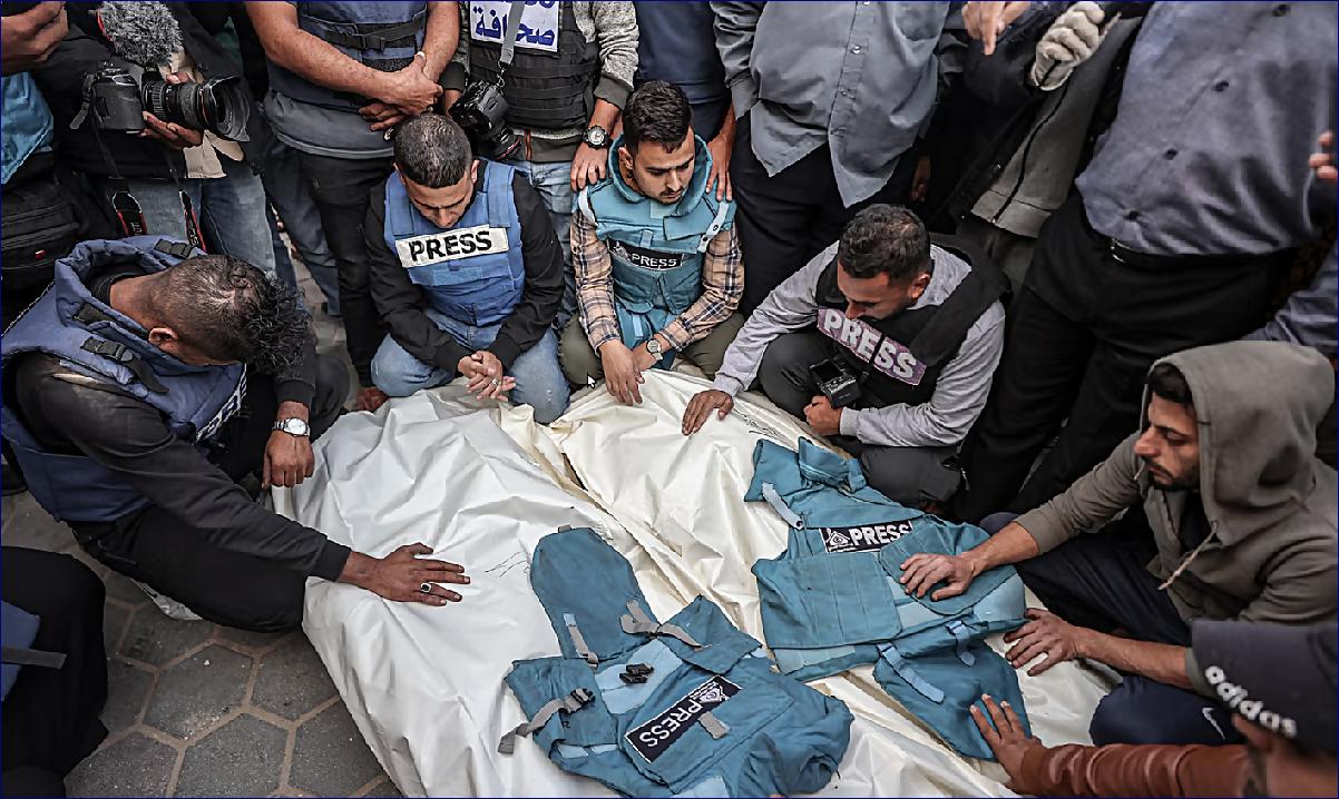 Nevládní organizace pro svobodu tisku popisuje izraelské zabíjení reportérů pracujících v Gaze jako „bezprecedentní krvavou lázeň“.