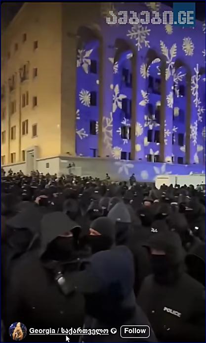 Večer však maskovaná policie a úředníci magistrátu Tbilisi bezmocné přihlíželi na vánoční stromek, který nikdo nerozsvítil. Rodiče s dětmi, rovněž jako starosta města si to rozmysleli a nepřišli. Na impozantně připravené, ale prázdné pódium vystoupila prezidentka Gruzie Salome Zurabišviliová, která z nedalekého prezidentského úřadu - na téměř vylidněné náměstí přišla pěšky.