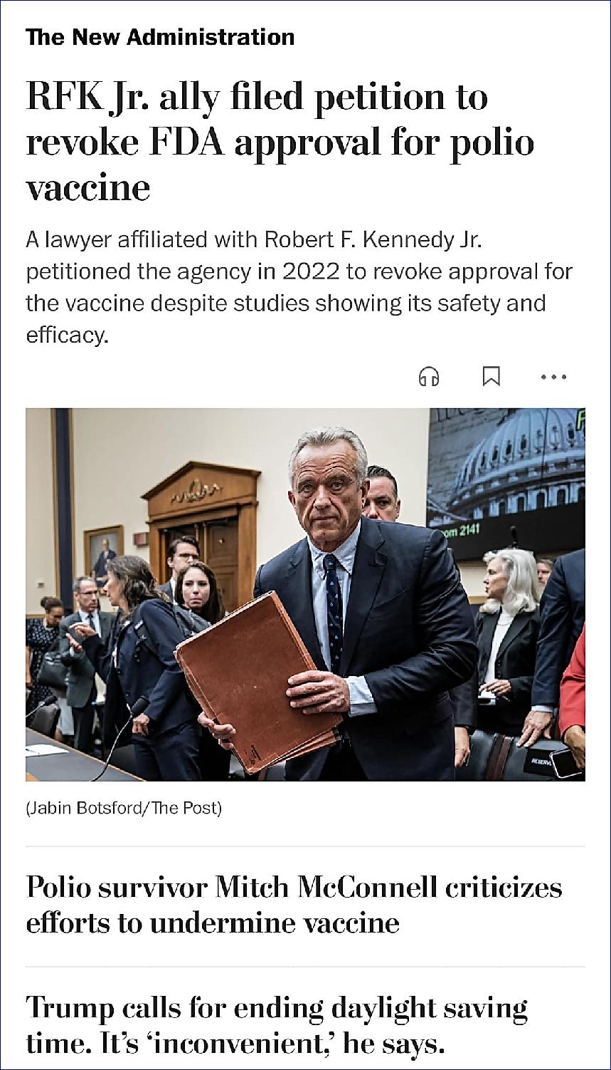 Vláda idiotů. Zatímco zvolený prezident USA Donald Trump triumfálně poráží letní čas, blízký spolupracovník budoucího ministra zdravotnictví Roberta F. Kennedyho Jr., právník Aaron Siri, bojuje za to, ab bylo ZRUŠENO POVOLENÍ POUŽÍVAT V USA VAKCÍNU PROTI OBRNĚ.