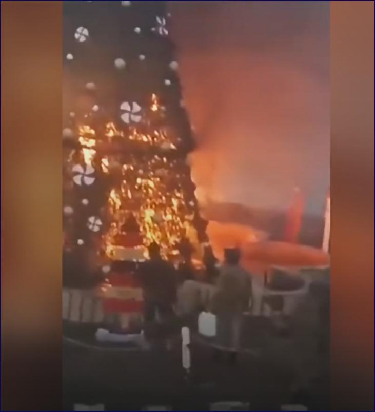 Foto: Zahraničními extremisty podpálený vánoční stromek