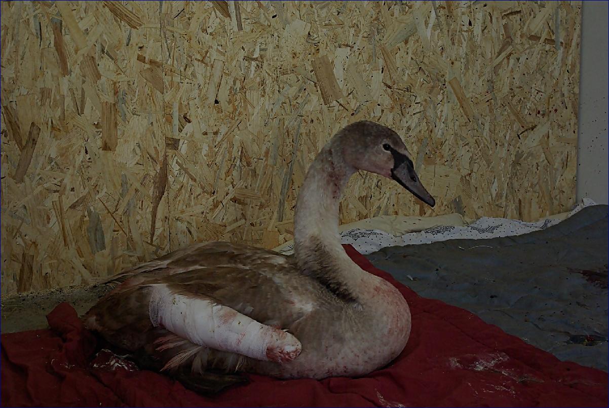 Celkem jsme vyjížděli v noci pro 7 labutí. Jedna uhynula bohužel do našeho příjezdu, rozbila si nárazem do tramvajového vedení na Mánesově mostu hlavu. Jednu se nepodařilo najít, nejspíš ji někdo donesl do vody (možná zraněnou). Pět živých, ale zraněných, labutí jsme dovezli do záchranné stanice. Jedna z nich má utržené křídlo, druhá se nemůže postavit, zbylé mají snad jen oděrky a pohmožděniny, píše Záchranná stanice hl. m. Prahy pro volně žijící živočichy.