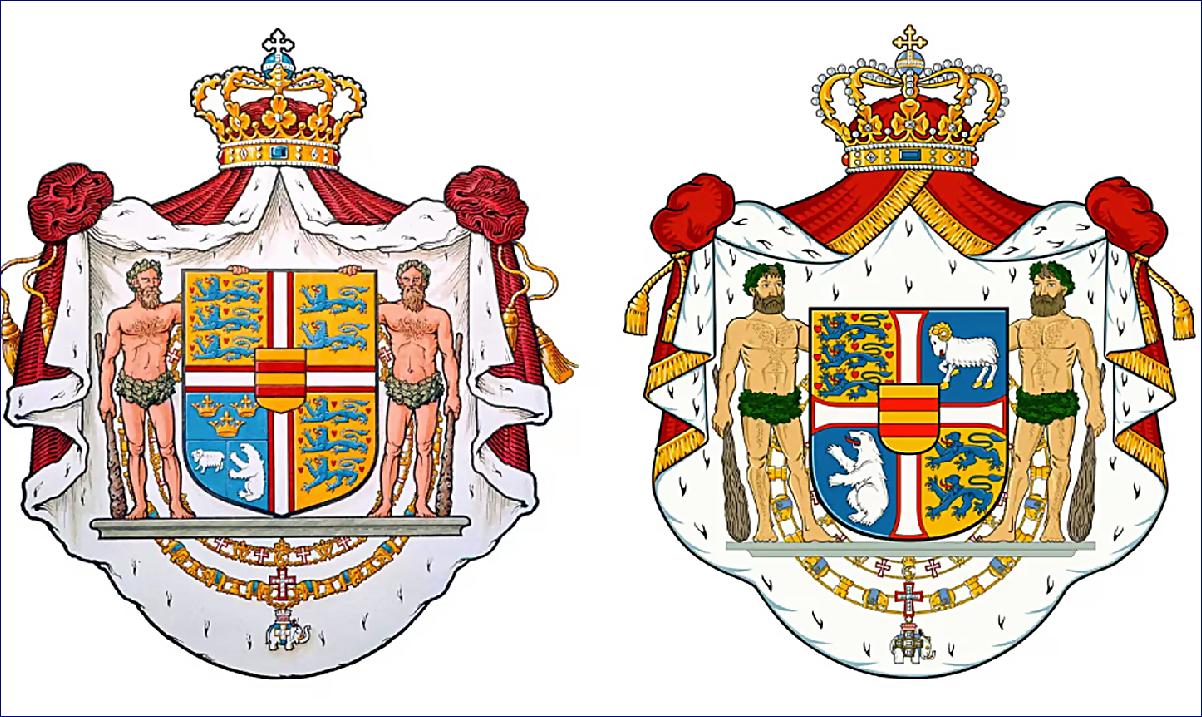 Obrázek: V novém erbu, napravo, král zvětšil obraz ledního medvěda a berana, což reprezentuje Grónsko a Faerské ostrovy