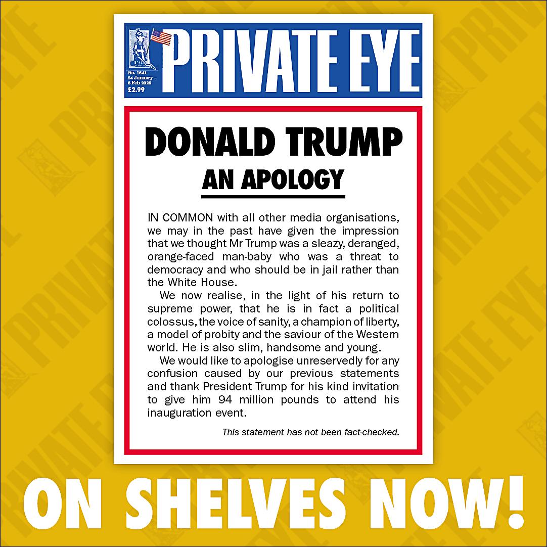 Private Eye: Hluboká omluva Donaldu Trumpovi