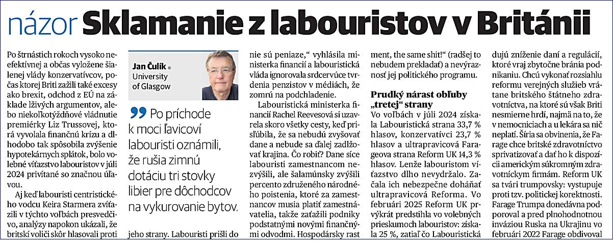 Článek Jana Čulíka ve slovenském deníku Pravda. Kompletní text ZDE