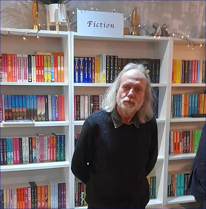 podvečer v jednom knihkupectví v Glasgow v rámci své čtecí cesty po