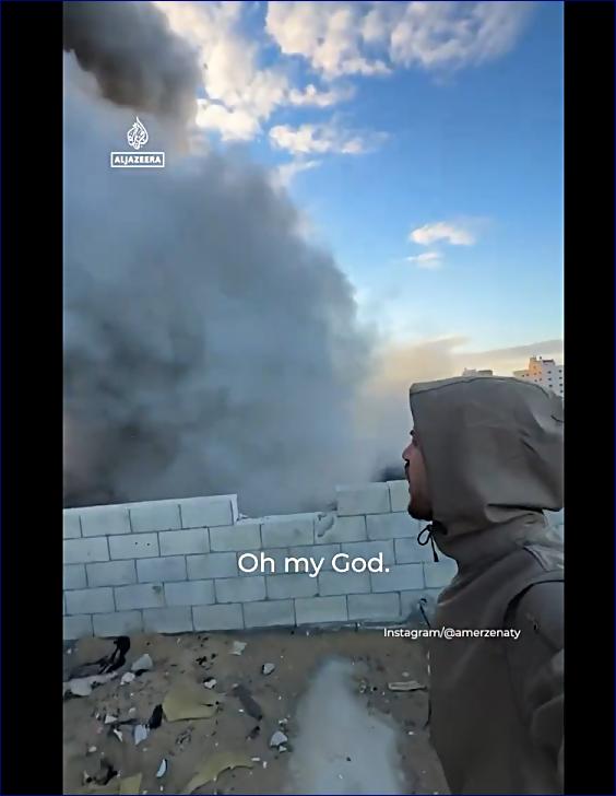 Palestinian photographer Ameer Marwan captured the moment he narrowly escaped an Israeli strike on a residential building in Gaza City. pic.twitter.com/tHfRZdry1W