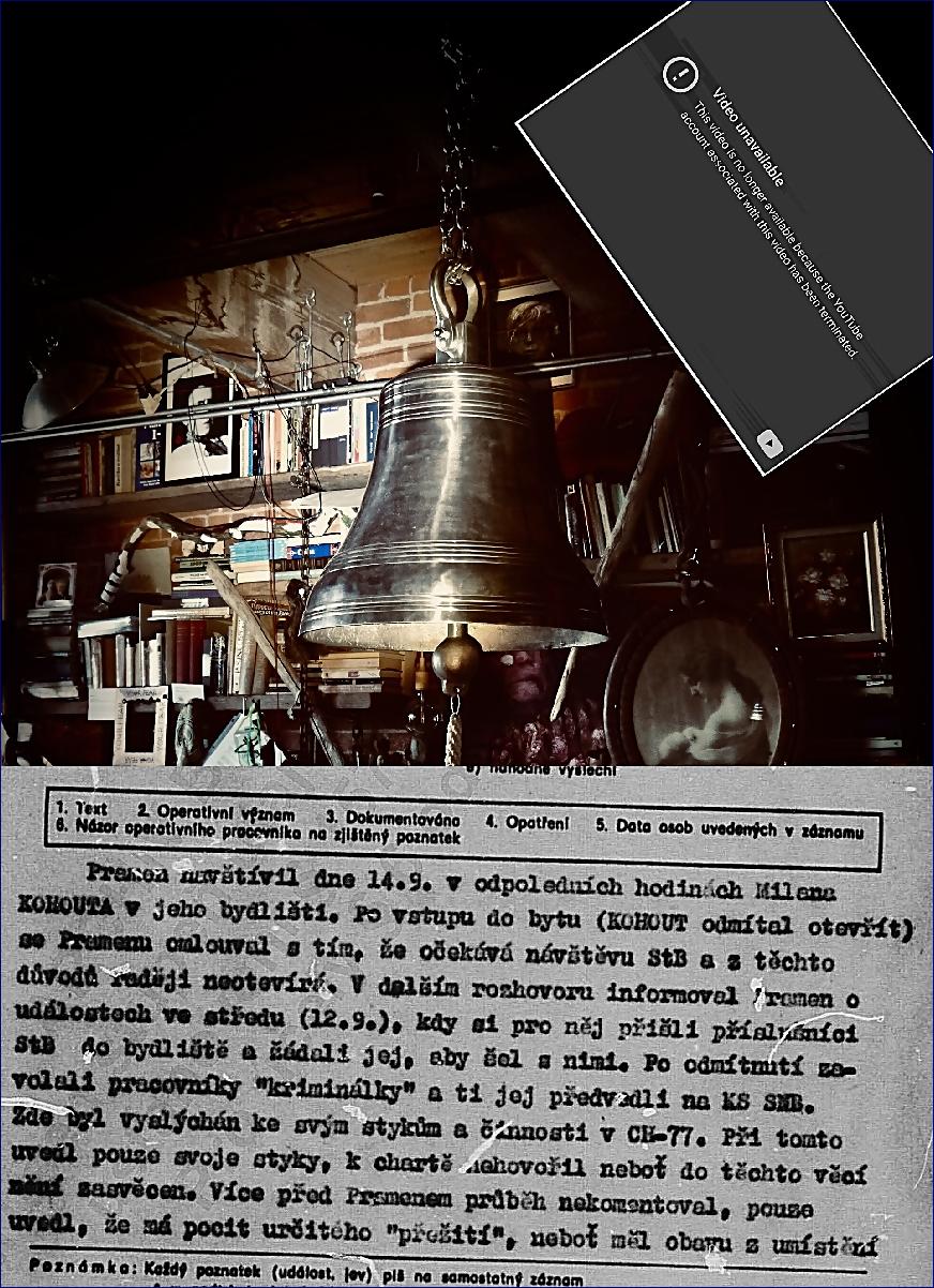 mě nakonec odvedla na výslech (viz přiložený záznam StB).