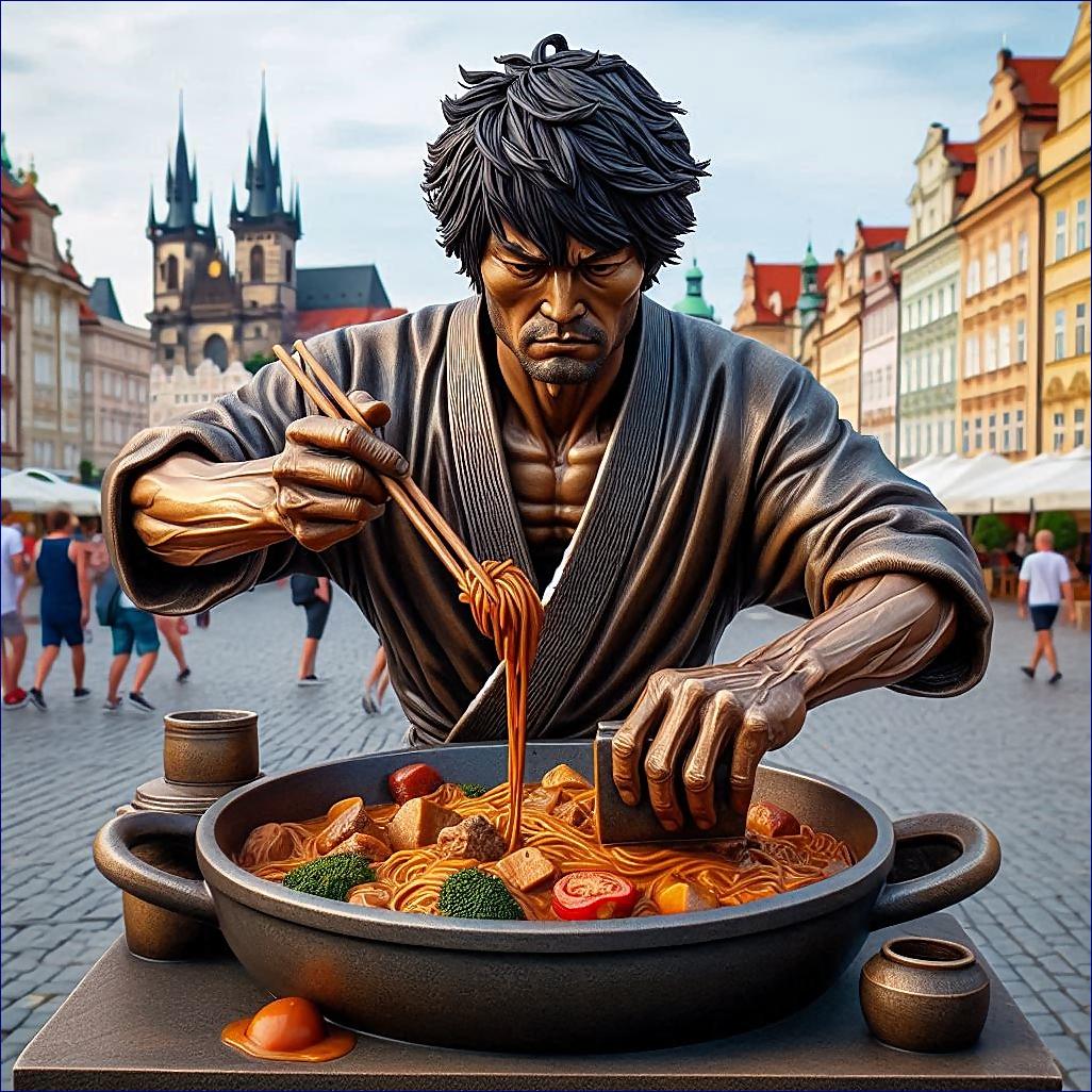 Na rozdíl od jiných, kteří vaří nepoctivou bramboračku!“ zvolal a práskl
