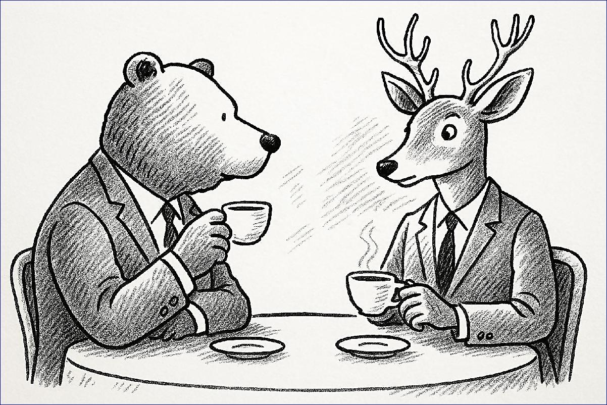 „I já toužím po tom být jednomyslně milovaným vůdcem své země jako můj Méďa,“ rozplývá se při té představě mladší z páru nad úspěchy partnera a kritizuje, že např. jejich dostaveníčka v mučírně by na prohnilém, nesvobodném a dekadentním Západě byla terčem nesmyslné kritiky prolhaných a zvrácených woke zelených aktivistů – i když přinášejí tolik uvolnění, radosti a povyražení, které právě jeho Méďa v životě potřebuje. Obzvlášť po náročném dni plném rozhodování, koho patří otrávit a komu bude lépe, když vypadne z okna.