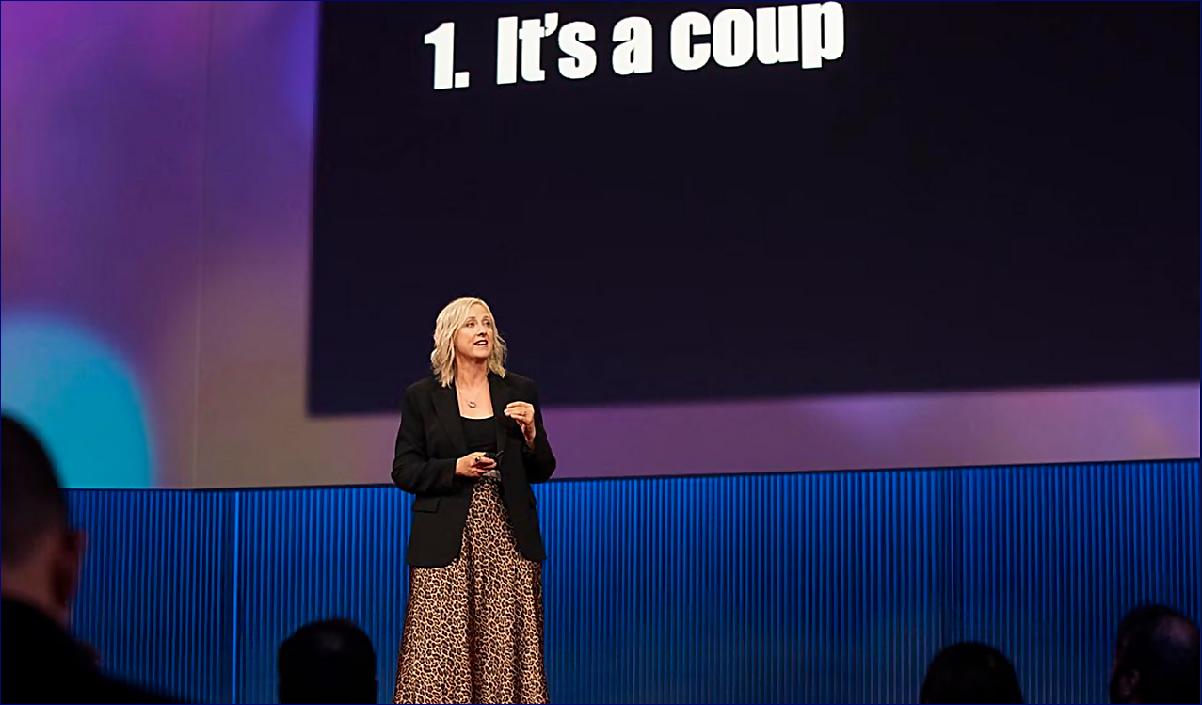 O dva dny později jsem stála na pódiu Tedu a přednesla úvodní řeč konference. Začalo to nečekaným jásotem, když jsem vyvěsil obrázek s nápisem: „Je to puč“. Nemůžeme proti němu bojovat, když ho nevidíme, řekla jsem, a nemůžeme ho vidět, když ho nedokážeme pojmenovat. Nečekala jsem spontánní reakci. Ani mi to nepřipadalo kontroverzní. (Celý týden, ve dnech následujících po přednášce, mi lidé říkali, jaké to bylo „uvolnění“, když někdo ta slova řekl nahlas. „Zasáhlo mě to někde pod solar plexus,“ řekl jeden z řečníků. „Nedokážu vysvětlit, jakou sílu to mělo, když to někdo řekl, obzvlášť tady.")