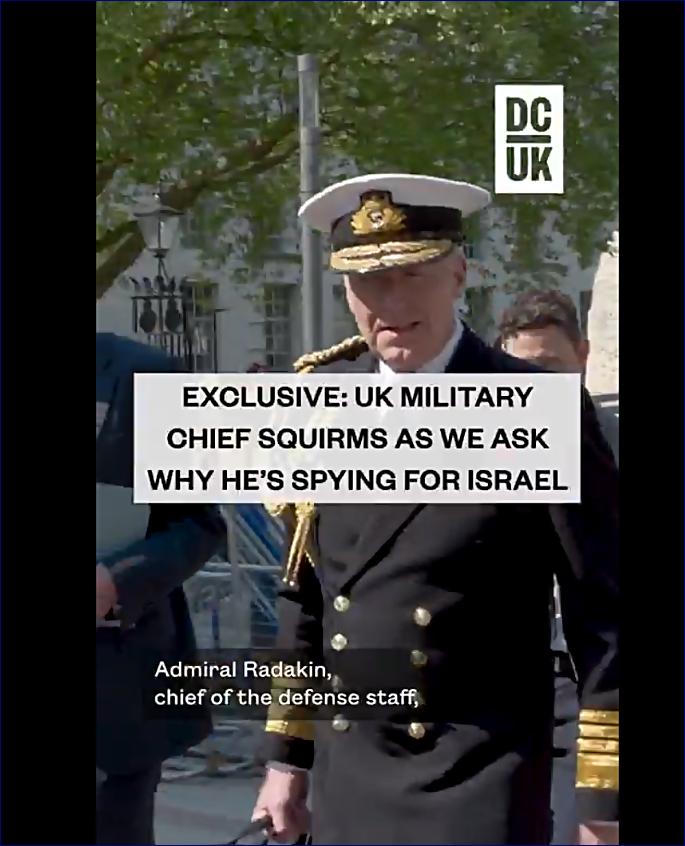 Exkluzivně: Šéf britské armády se kroutí, když se ho ptáme, proč špehuje pro Izrael🚨BREAKING -- Declassified managed to locate and question the head of Britain's military, Admiral Tony Radakin, about the intelligence his military is sharing with Israel. pic.twitter.com/pr6s588whc