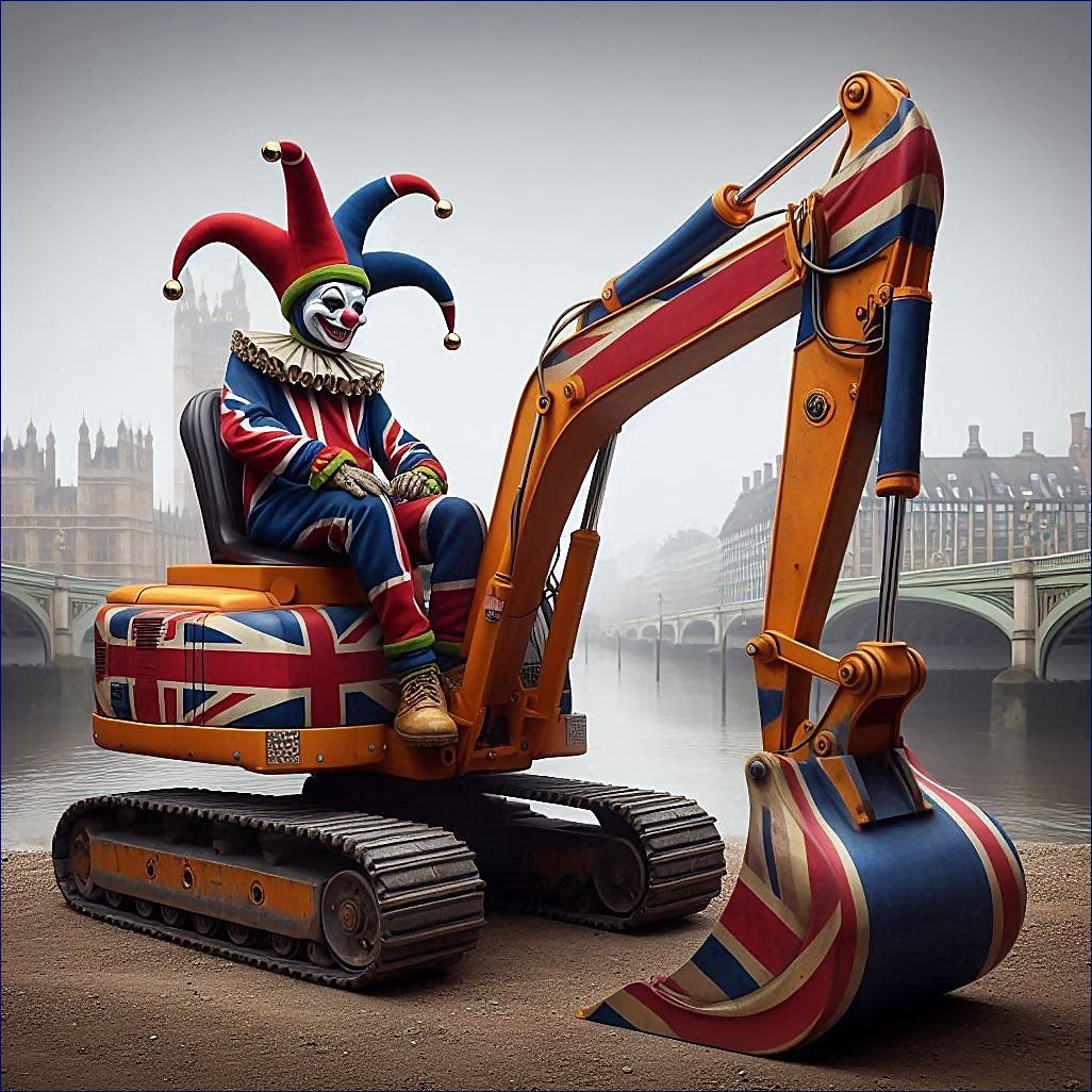 A ta mašina? Farageho bagr je buď metafora pro „vyhrabávání Británie z krize“, nebo náznak, že jeho politika má stejnou jemnost jako buldozer. Každopádně je to nejvzrušivější okamžik britské politiky od doby, kdy Boris Johnson uvízl na lanové dráze.