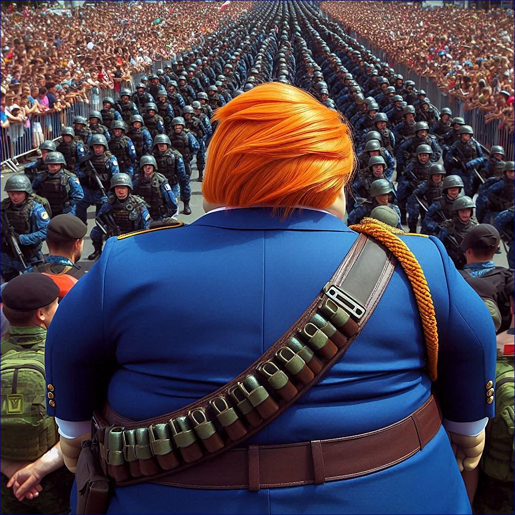 vojáků bude kráčet v rytmu Trumpokracie, jež se snaží ospravedlnit