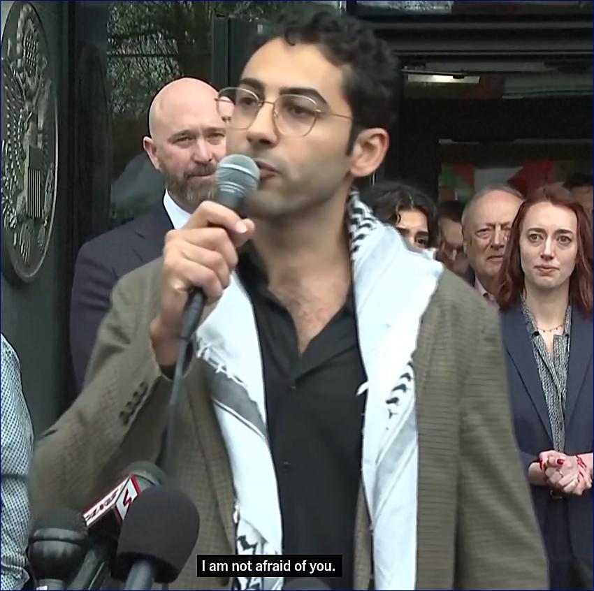 Americká vláda mě obviňuje z podkopávání zahraniční politiky USA, což je zjevně absurdní záminka pro deportaci za politický projev, který se Trumpově administrativě nelíbí. Vláda se ve snaze očernit mě uchýlila k nejhorším prostředkům. Mým jediným „zločinem“ je, že odmítám přijmout masakr Palestinců, že se stavím proti válce a prosazuji mír. Jednoduše trvám na tom, že mezinárodní právo musí být dodržováno. Věřím, že cesta k spravedlivému a trvalému míru pro Palestince a Izraelce vede přes diplomacii a restorativní spravedlnost.