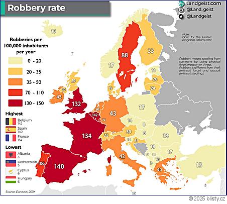 1) V zemích západní Evropy je obvyklé, že pokud někdo nahlásí loupež, je to zaneseno do databáze. Bez ohledu na to, zda to policie dále vyšetřuje (např. škoda může být malá, tak to neřeší), zda ověří, že šlo skutečně o loupež a ne o ztrátu, nebo že dokonce chytí viníka.