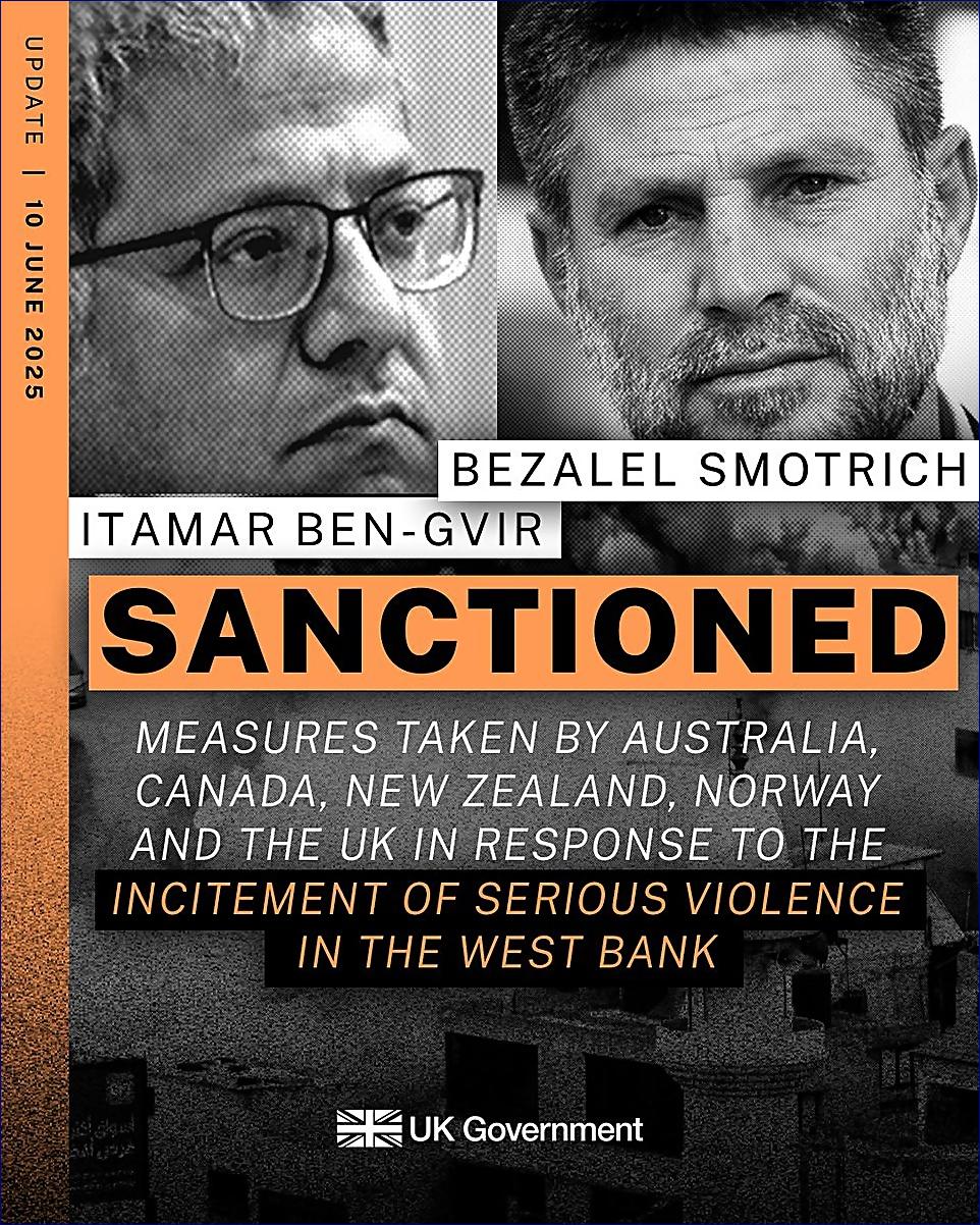 Britský ministr zahraničí: Itamar Ben-Gvir a Bezalel Smotrich podněcují extremistické násilí a závažné porušování lidských práv Palestinců. Tyto činy jsou nepřijatelné. Proto jsme nyní přijali opatření, aby byli ti, kdo jsou za ně odpovědní, pohnáni k odpovědnosti.
