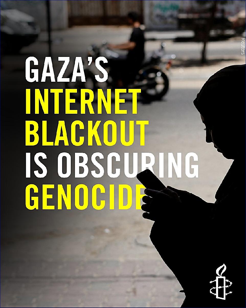 Israel has almost completely shut down internet in the occupied Gaza Strip. This puts Palestinian civilians even more at risk, it hampers rescue services and provision of humanitarian aid, and cuts people off from lifesaving information.