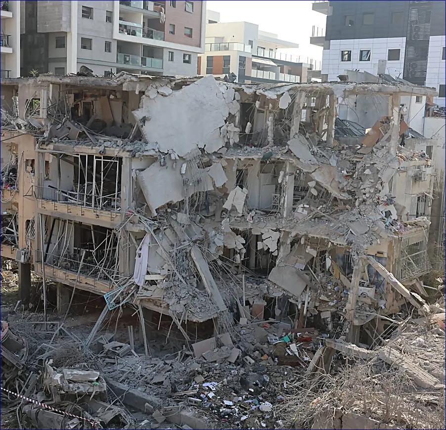 Ronen Makhtayev, zástupce velitele hasičů, řekl, že budova, která byla zasažena v Tel Avivu, je výšková budova, která byla „přímo zasažena“ na východní straně. „Škody se táhnou od 5. do 14. patra, což ztěžuje práci týmům,“ řekl. „Uvnitř je poměrně dost hasičů a tvrdě pracujeme na záchraně lidí uvízlých uvnitř a zároveň provádíme hašení. Zachránili jsme mnoho uvízlých osob a pokračujeme v pátrání po dalších.“