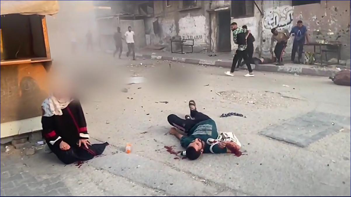 izraelského útoku na trh v centru Gazy, který se odehrál minulou noc.