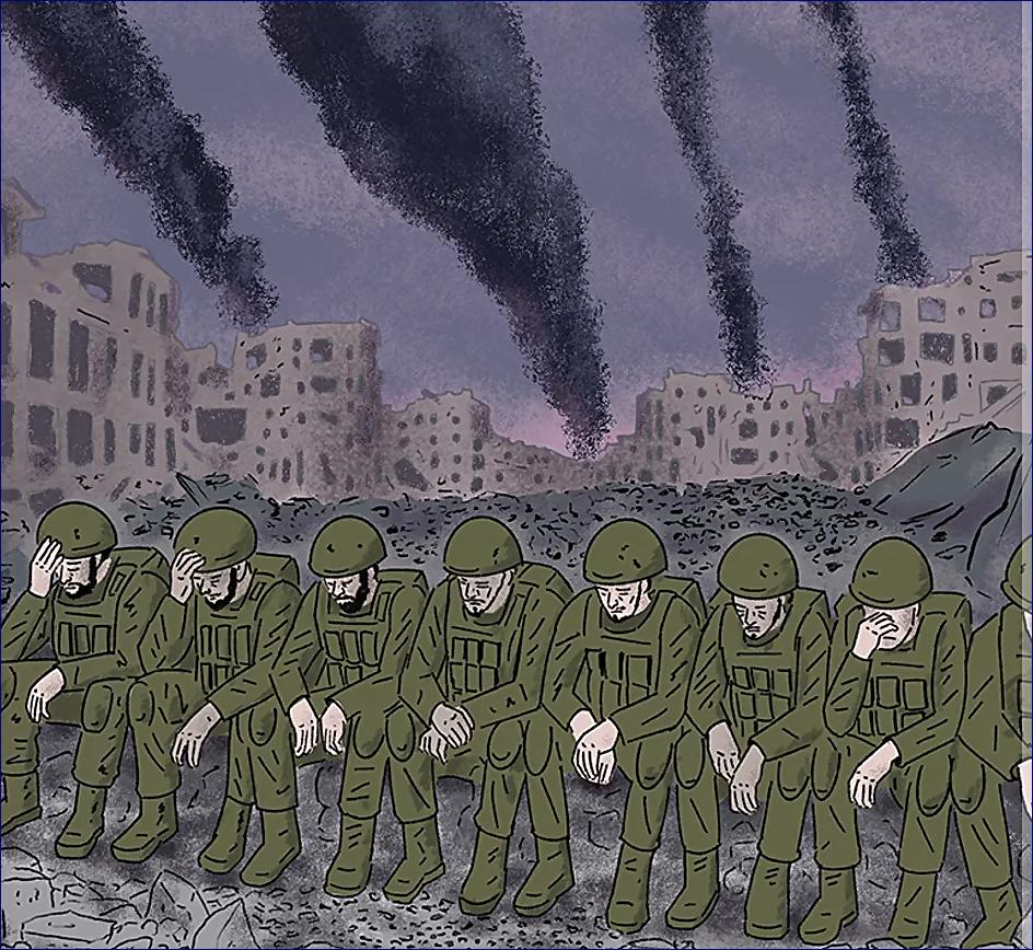 A jako by toho nebylo dost, teď nás nutí na další čtyři měsíce do zálohy. Nikdo se nás neptá, jestli chceme nebo jestli vůbec můžeme. ‚Nemůžeme nic dělat, máme nedostatek vojáků,‘ říkají důstojníci. A když si někdo stěžuje, vyhrožují mu vězením, nazývají ho zrádcem, zbabělcem. Takže většina z nás mlčí. Někdy pláčeme do telefonu mamce nebo kamarádovi, u kterého se cítíme v bezpečí. Ale ani to vždycky nepomáhá. Je to prostě svinstvo. Mám toho dost. Už nemůžu.