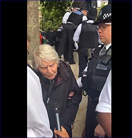 Několik nebojácných policistů riskovalo život, aby se postavilo hlavnímu nebezpečí terorismu, 83leté reverence  s hůlkou. Tato žena, Sue Parfitt se údajně stala vůdkyní britské pobočky Hamásu poté, co popravila předchozí vůdkyni, televizní celebritu Dawn French [která předtím vyjádřila ostrou kritiku izraelského vraždění v Gaze].