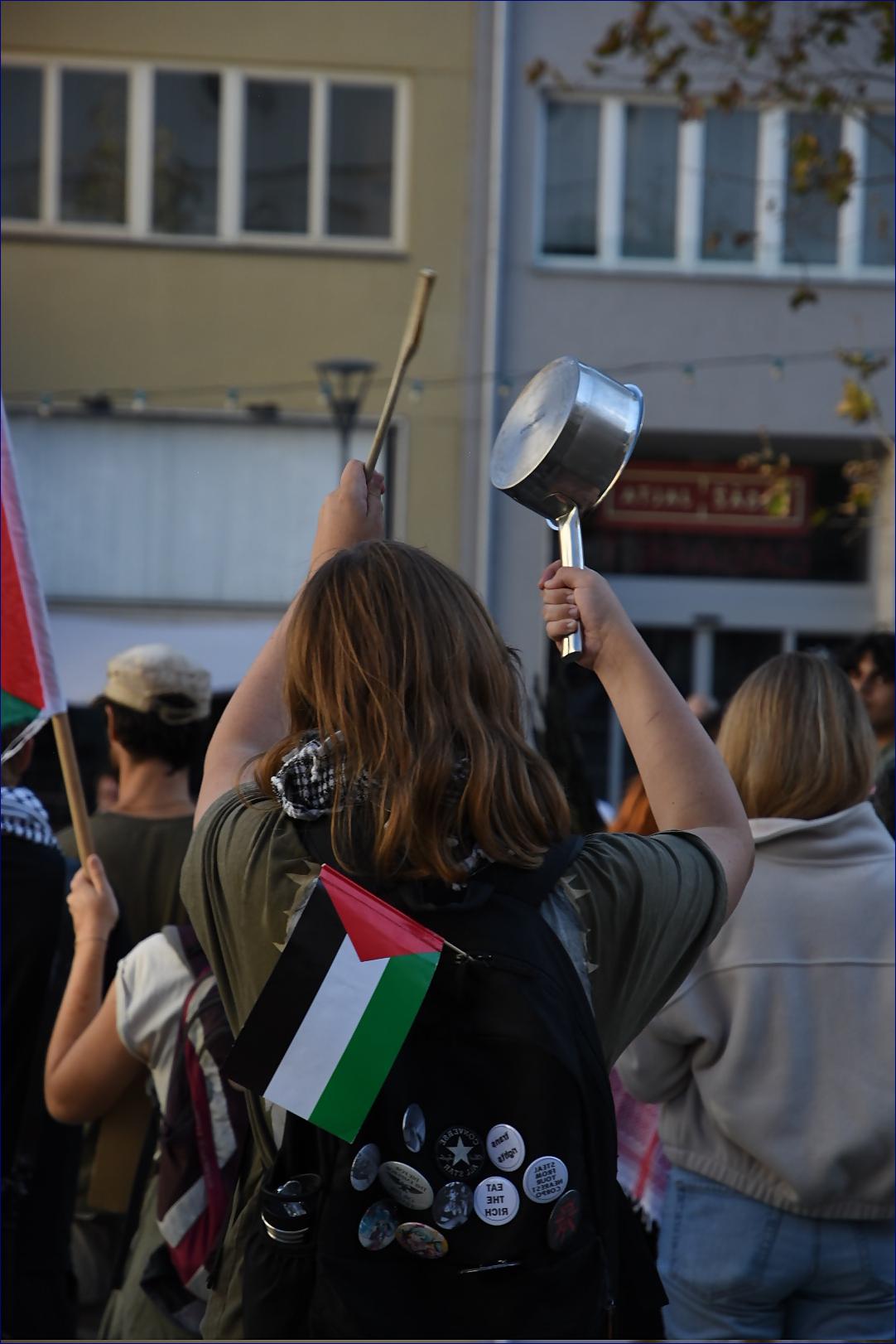 Průvod vyšel za hlasitého řinčení lžící a hrnců z Malinovského náměstí. Podle organizátorů přišlo kolem 200 lidí, což je brněnský rekord. „Poukazuje to na rostoucí frustraci z jednání české vlády a bolest z pozorování toho, jak situace stále eskaluje,“ komentuje organizátorka demonstrace Ari Bukaj.