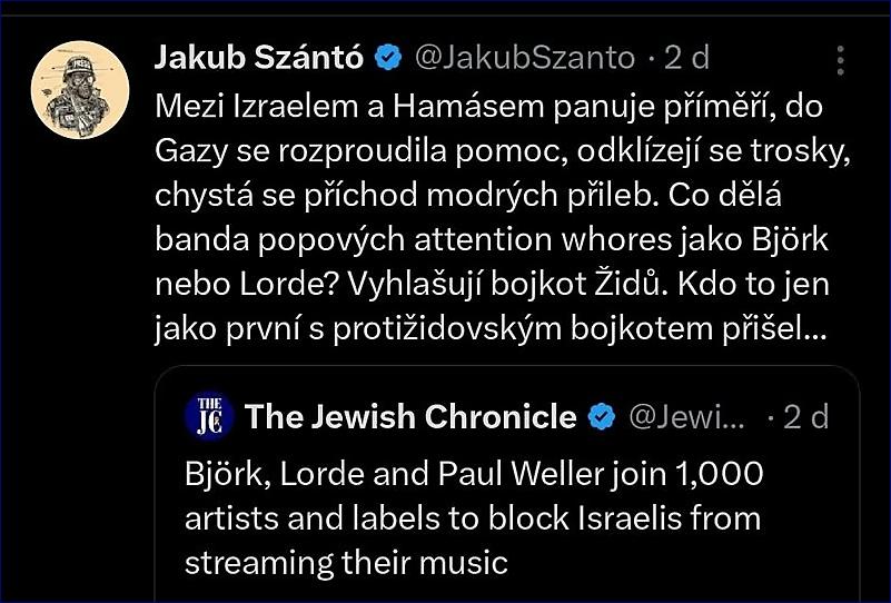 Szántó účelově zaměňuje slovo žid a Izraelec a nechutně podsouvá spojení s nacismem.