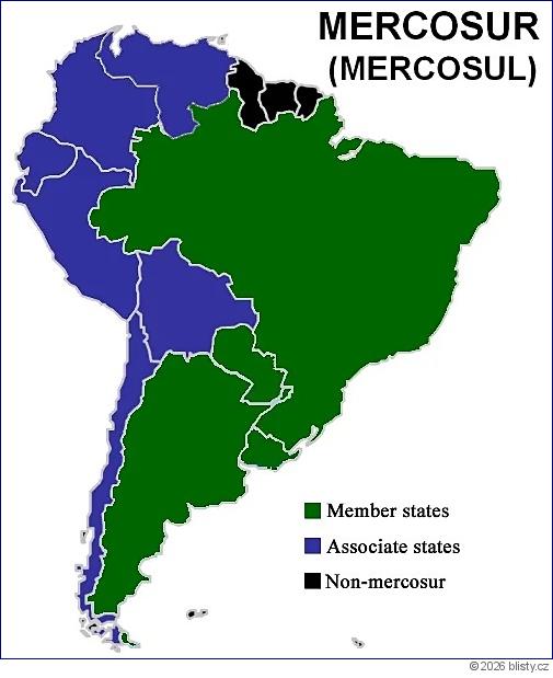 Je to taková “malá jihoamerická EU”. Sdružuje jen čtyři země, ale ty největší a nejdůležitější - Brazílii, Argentinu, Uruguay a Paraguay. Venezuela tam byla, ale vyhodili ji z celkem logických důvodů, a Bolívie je v procesu přijímání. Z těch silnějších zemí tam chybí třeba Chile a Kolumbie. Ostatní země Jižní Ameriky jsou “přidružené”, tzn. odstraňují vnitřní bariéry obchodu, vztahů s dalším světem se to netýká.