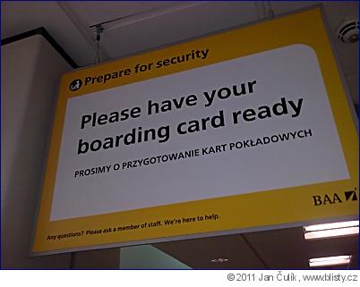 Stále častěji se setkáváte na veřejnosti s dvojjazyčnými nápisy jako je tento na letišti v Edinburku. Před bezpečnostní prohlídkou se tam promítá živý obraz letušky, která promlouvá k cestujícím nejrůznějšími jazyky - mimo jiné i v polštině.
