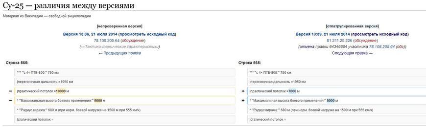 Podle ruského ministerstva obrany ZDE se v den sestřelení letu MH17 k boeingu přiblížila ukrajinská "stíhačka" Su-25 a krátce na to se stroj zřítil. V souladu s tradicí Rádia Jerevan je k tomuto tvrzení ovšem třeba připojit další detaily, aby byla jeho nepochybná správnost náležitě demonstrována. Su-25 je protizemní bitevní letoun ZDE, není vybaven střeleckým radarem, pouze laserovým dálkoměrem a značkovačem; jeho maximální rychlost se blíží cestovní rychlosti běžného dopravního letounu a na letovou hladinu letu MH17 10 000 metrů nevystoupá, zůstane na 7 000 metrech. Během odpoledne se objevil důkaz o aktuální editaci hesla Su-25 na ruské Wikipedii ZDE, z ruské adresy ZDE, s cílem přepsat hodnotu maximálního dostupu. A večer web The Aviationist ještě doplnil ZDE, že grafika použitá ruským ministerstvem na tiskové konferenci ani nezobrazuje Su-25, ale starý americký průzkumný letoun EF-111.
